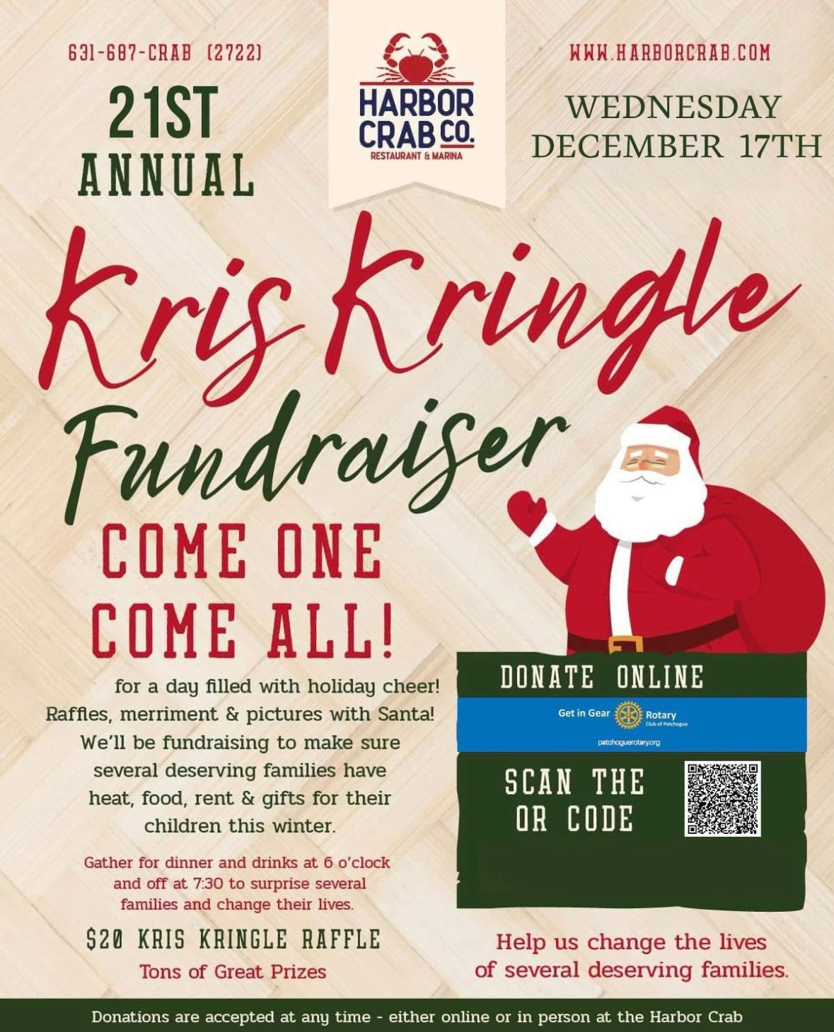 Help change the lives of several deserving families on the night of the 21st Annual Kris Kringle!